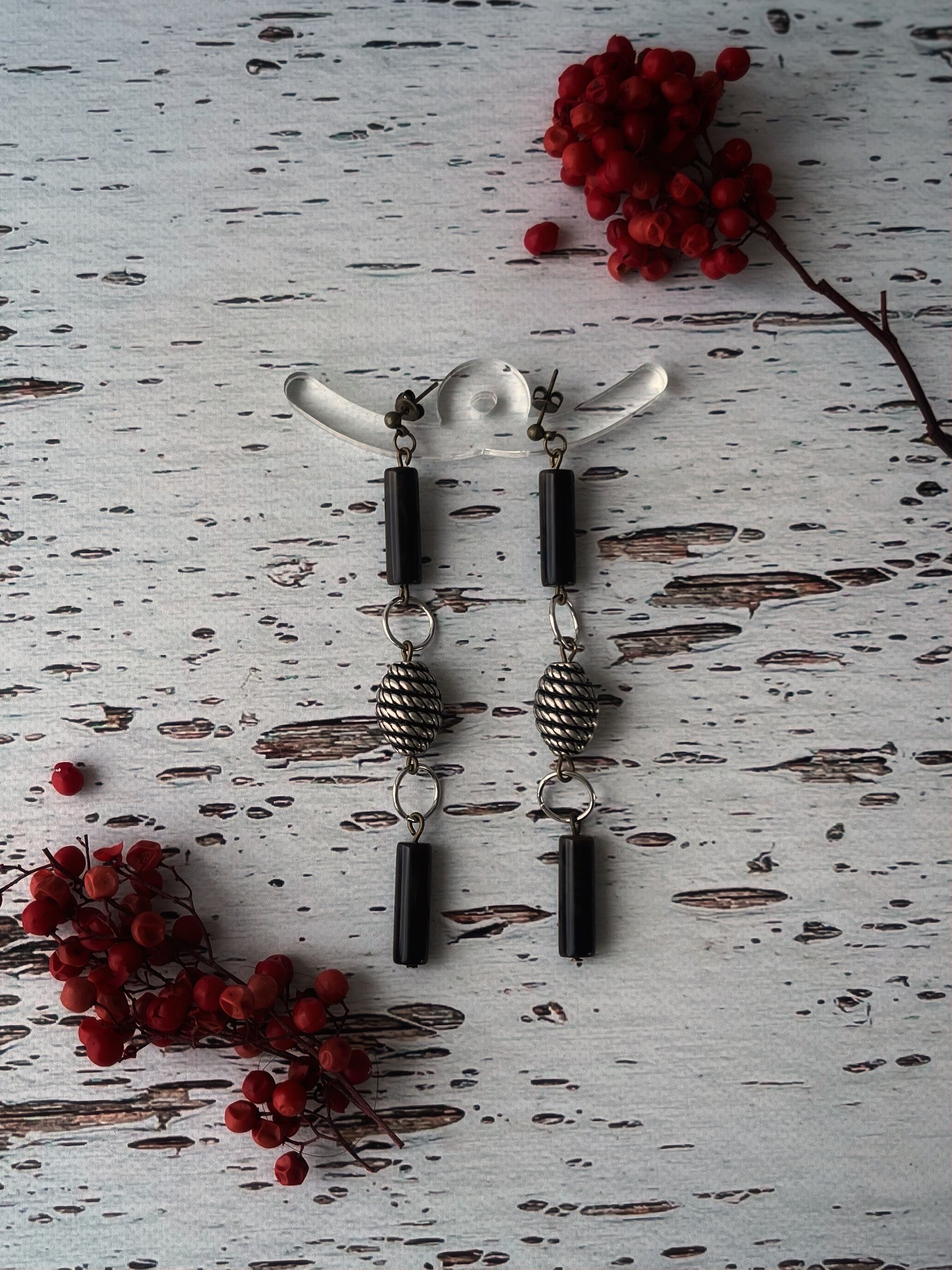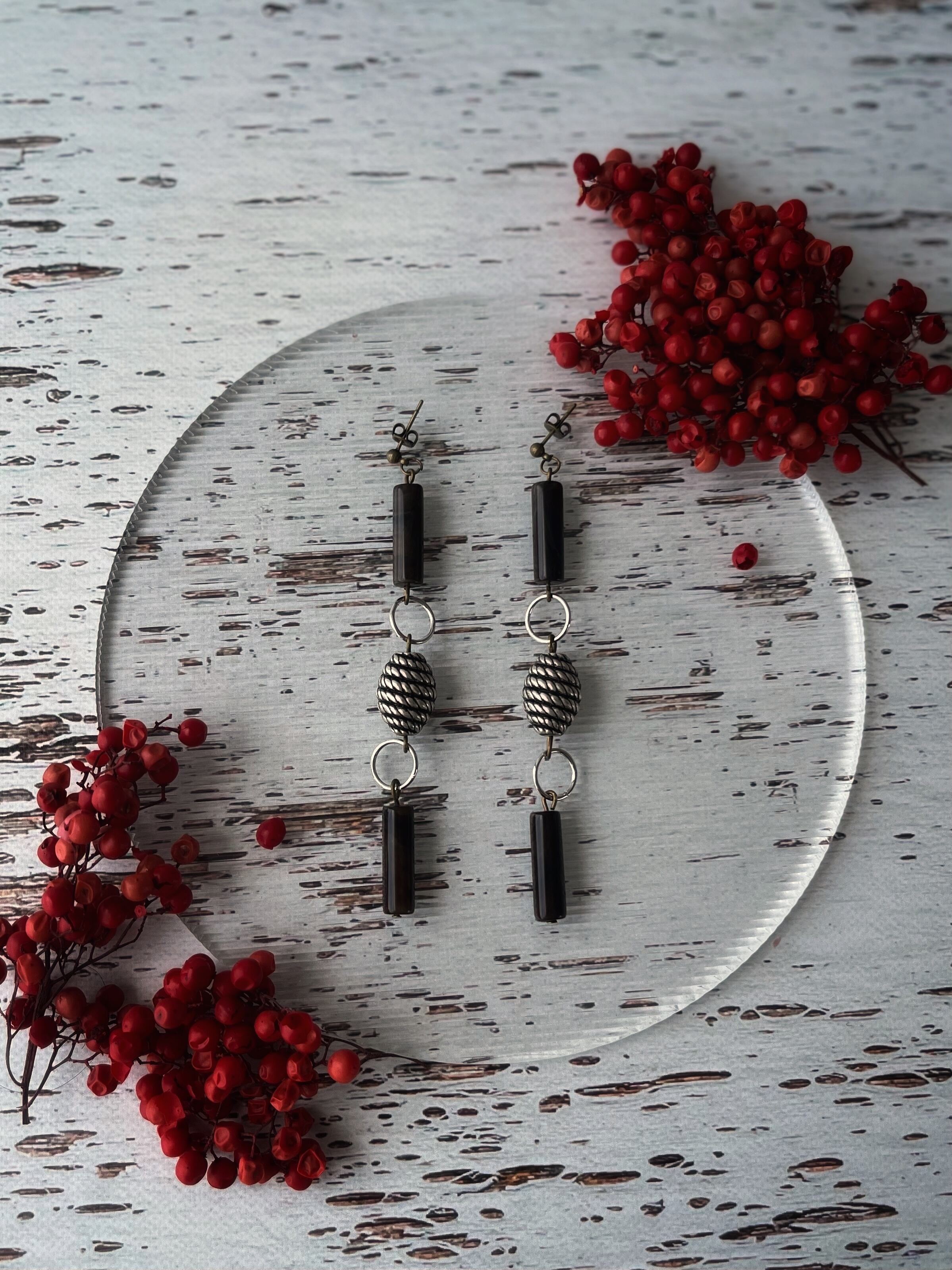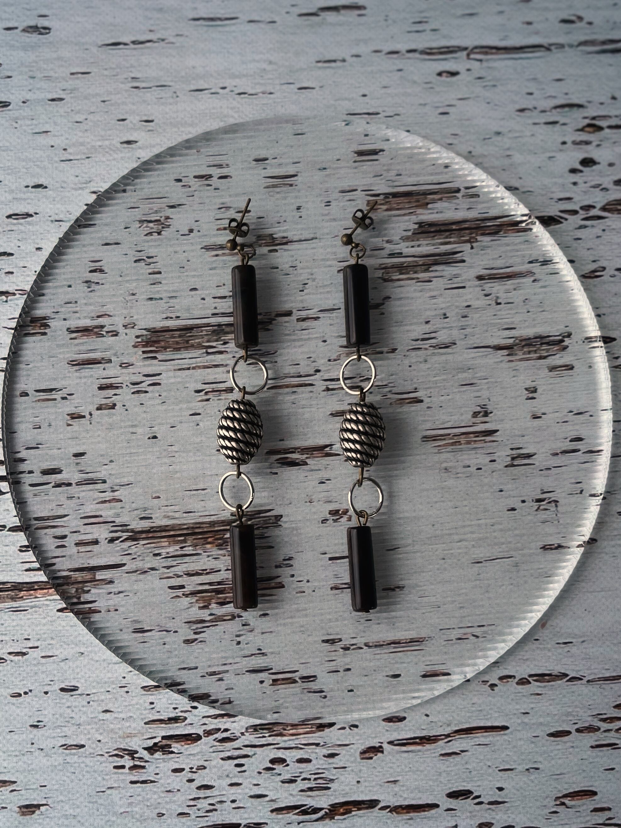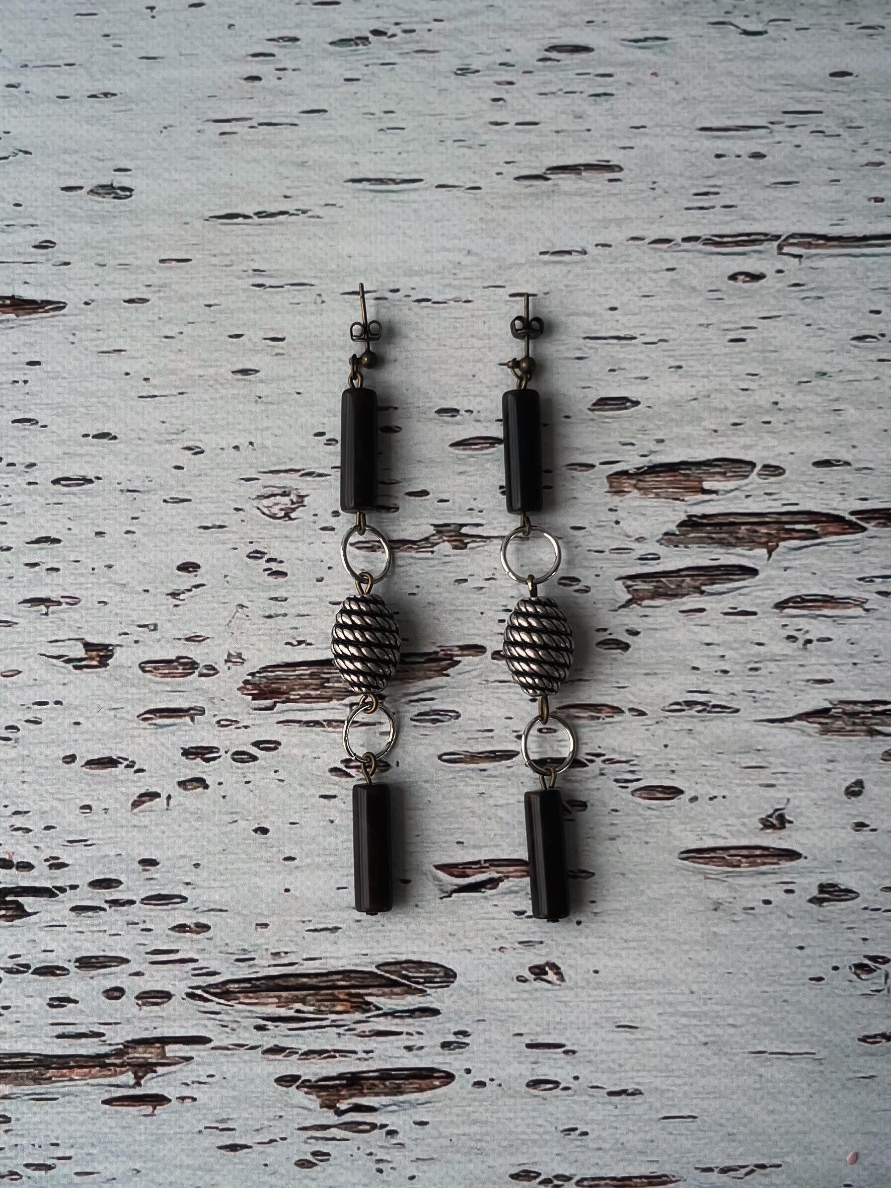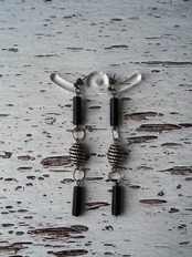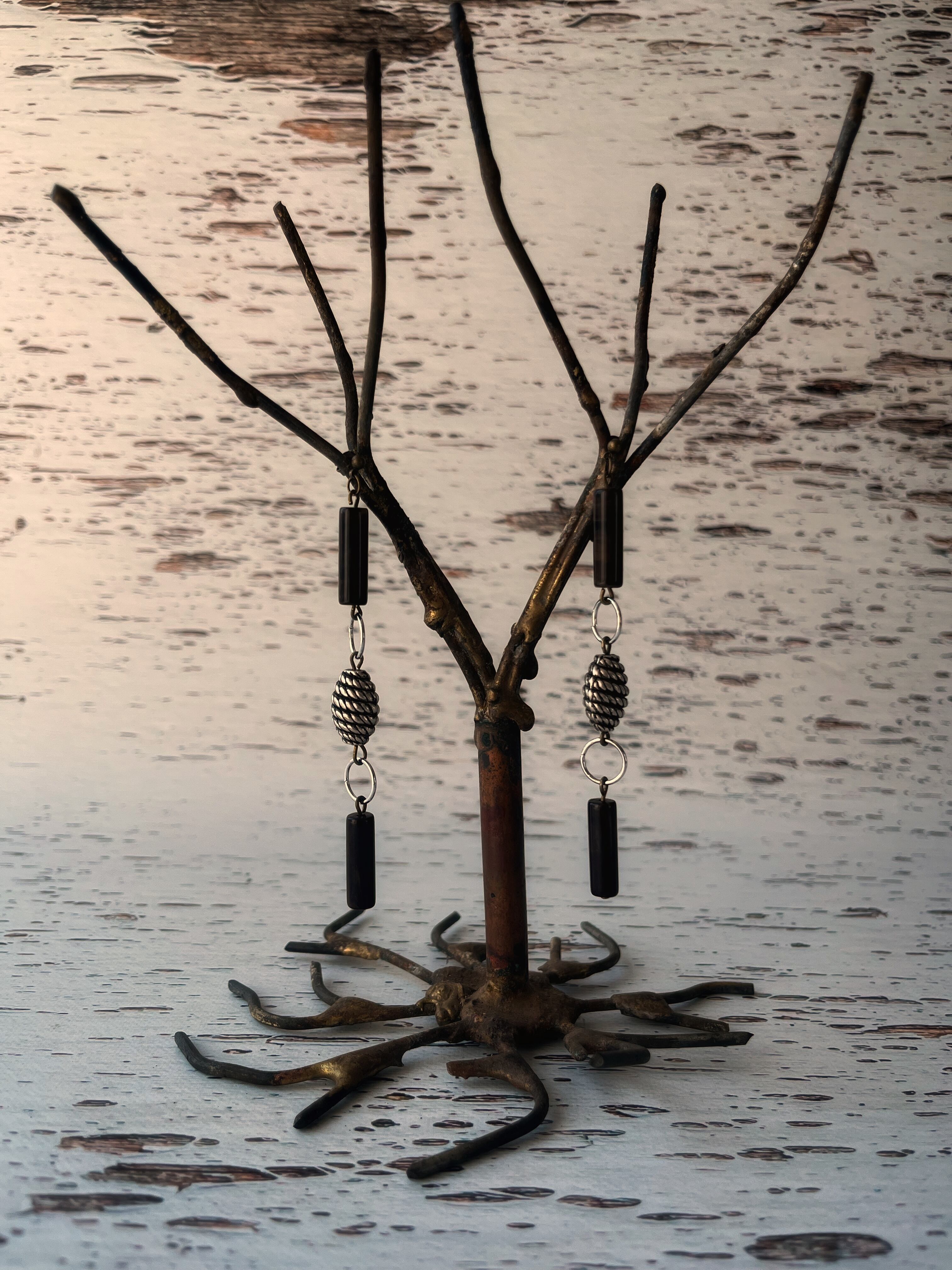 ドイツヴィンテージのチューブ型ビーズとコンクリート色のメタリックビーズを組み合わせて無骨なコンクリートの質感と地形の肌質を表現しました。